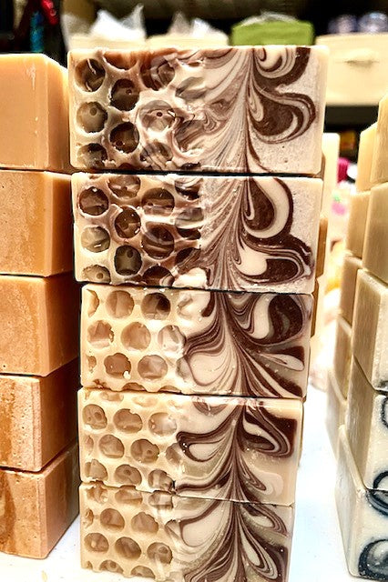 Unique coconut milk and honey natural cold process soap with a creamy vanilla and almond base notes.